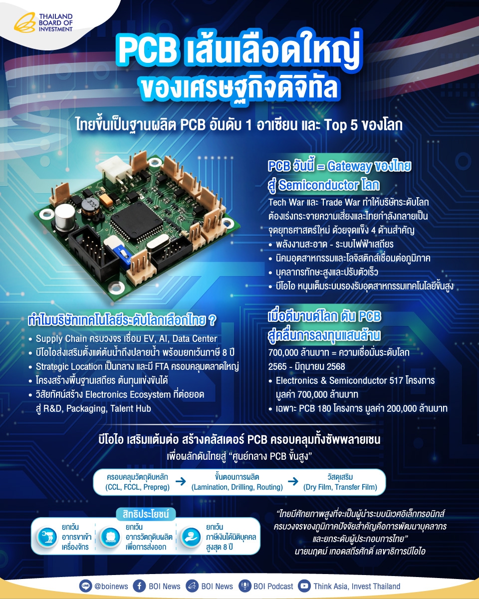 PCB เส้นเลือดใหญ่ของเศรษฐกิจดิจิทัล ไทยขึ้นเป็นฐานผลิต PCB อันดับ 1 อาเซียน และ Top 5 ของโลก