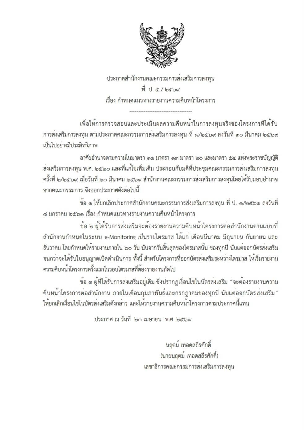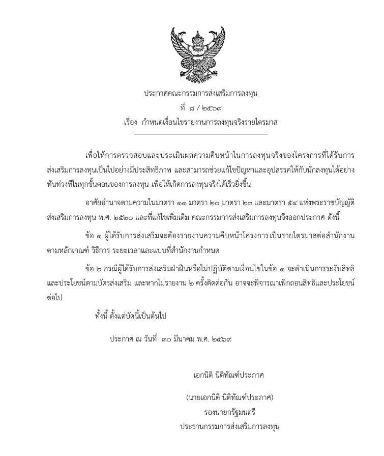 21 เมษายน 2569เรื่อง กำหนดเงื่อนไขรายงานการลงทุนจริงรายไตรมาส